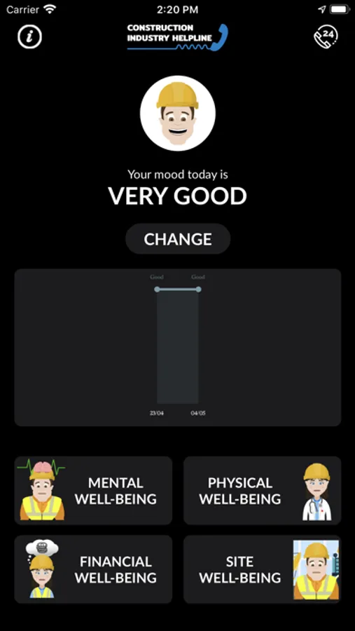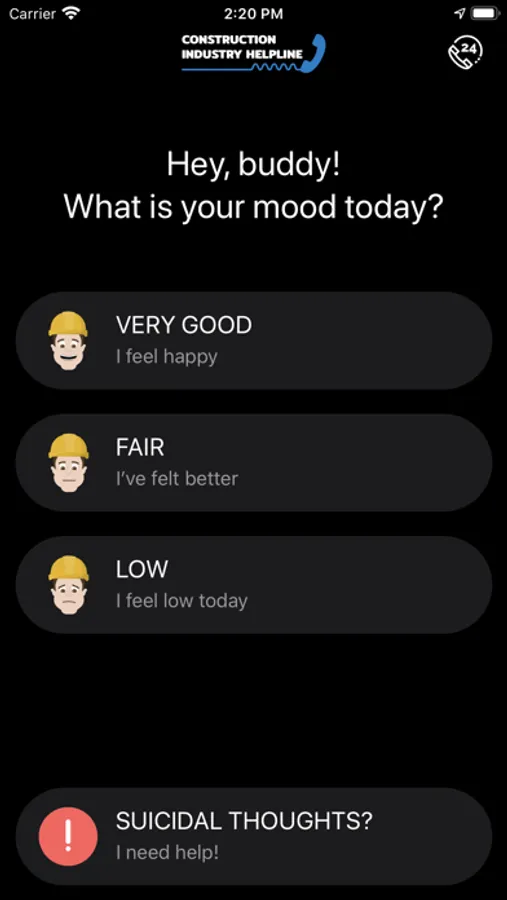 We recognise that not everyone feels comfortable talking about their feelings or personal situation, so the app is aimed at construction workers who would like to find out more information about how they can perhaps help themselves or if necessary, take the next step in seeking professional help. It is a preventative tool and aims to provide support at the initial stages of a situation so that the problem does not reach a life critical stage.