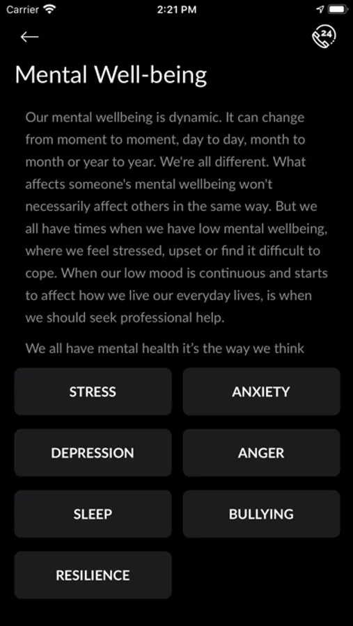 Users will initially be guided through a series of questions to help gain a basic understanding of what their issues are. Depending on the answers provided by the user, the app will: