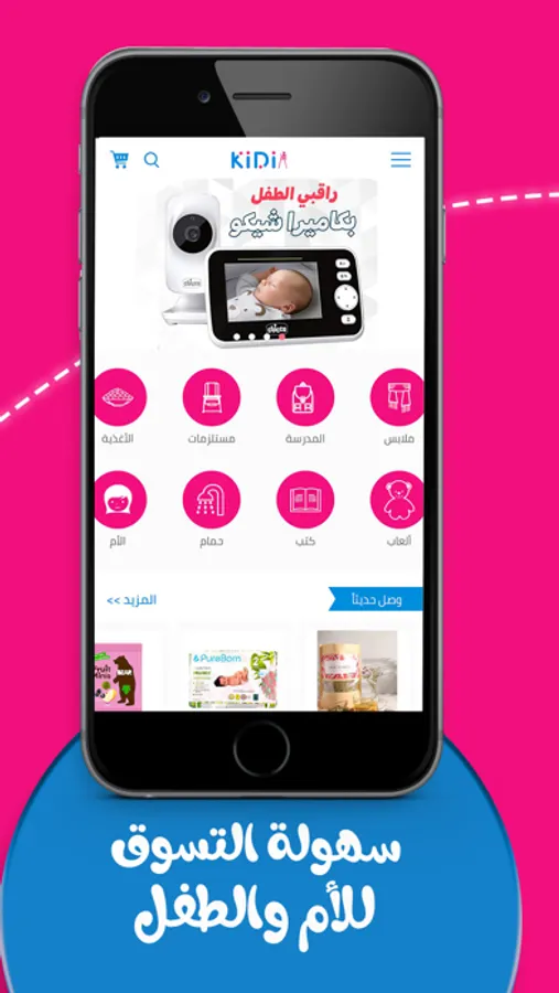 كيديا تطبيق و متجر الكتروني يهتم باحتياجات الأم و الطفل معاً، حيث يحتوي على على اقسام متنوعة تضم منتجات متعددة خاصةبالطفل و الام منذ بداية الحمل وحتى بعد الولادة.