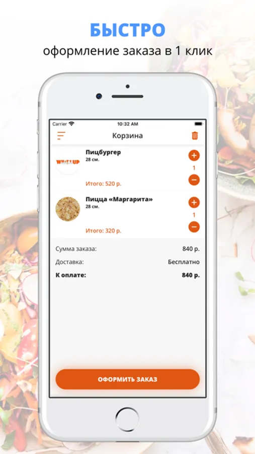 Скачивайте приложение, оформляйте заказ и наслаждайтесь любимой едой, где бы Вы ни были! Приятного аппетита!