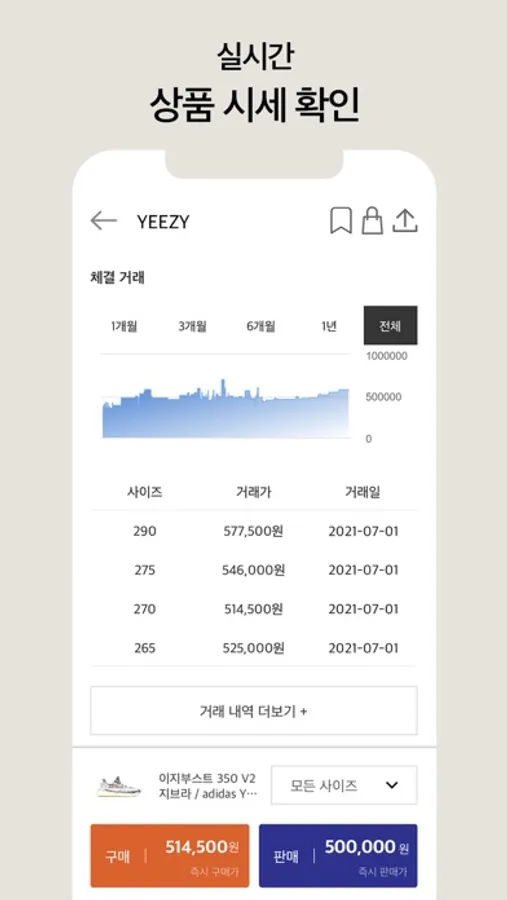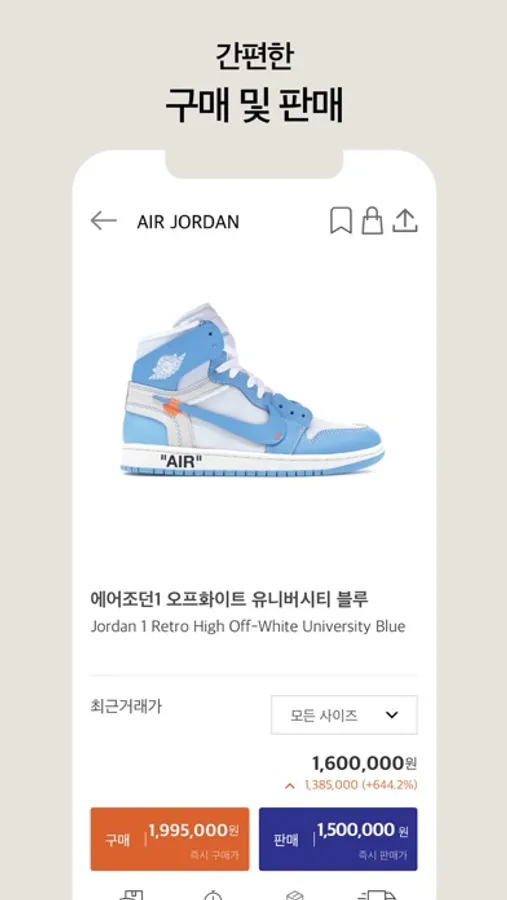 거래하고 싶은 제품의 검색 한 번만으로 시세 확인, 거래 진행이 가능합니다. 국내 최초 자동 결제 시스템을 도입하여 결제 정보를 최초 등록 후, 입찰만 해놓으면 거래 체결 알림을 받을 수 있으며, 거래 진행, 입찰 현황, 배송 현황 등의 알림을 통해 보다 간편한 거래가 가능합니다.