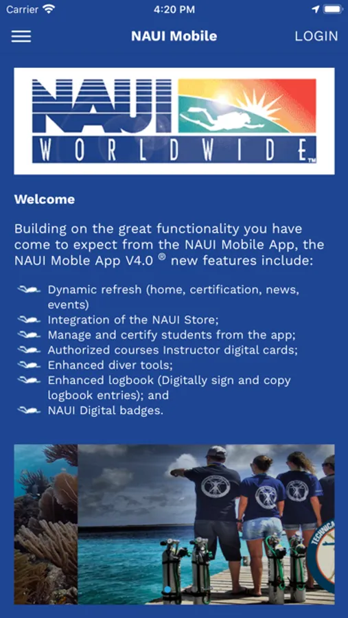 Version 4.0 of the NAUI Worldwide ® Mobile App continues to build on the great functionality NAUI divers and dive professionals have come to expect from the NAUI App. Directly linked to NAUI CORE (Certifications; Online training; Resources; and Educational material), NAUI divers and dive professionals can no access key functionality directly from the app allowing them access to important resources anywhere on from their mobile device. The ability to find the closest NAUI dive store and get step by step street directions is just one of the powerful features made possibly by utilising mobile technology. Feature Include the following: