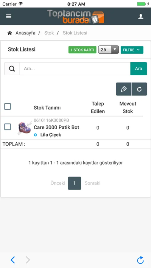 Toptancımburada tedarikçilerinin ürün stoklarını takip edebilecekleri mobil uygulamadır.