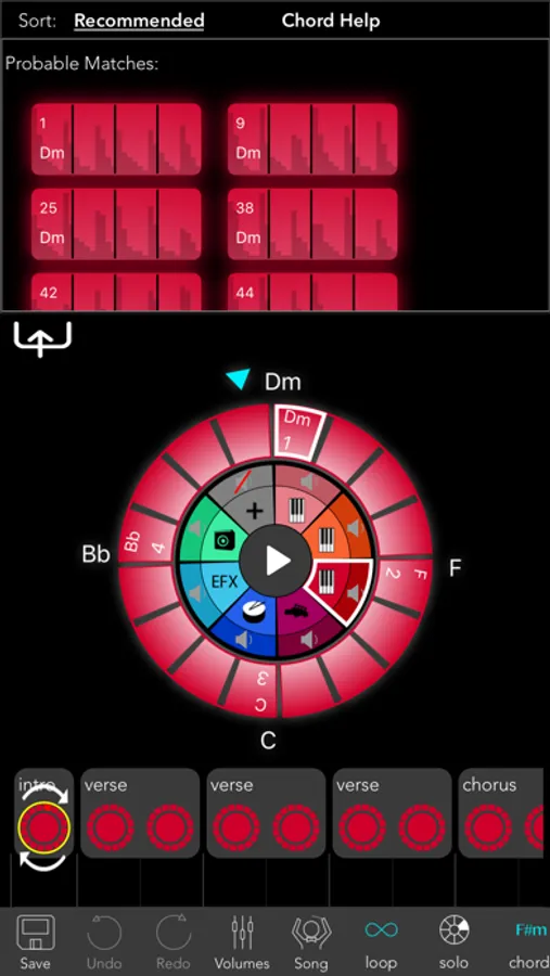 - Creation of chord patterns is guided and inspired – without need for knowledge of chords.