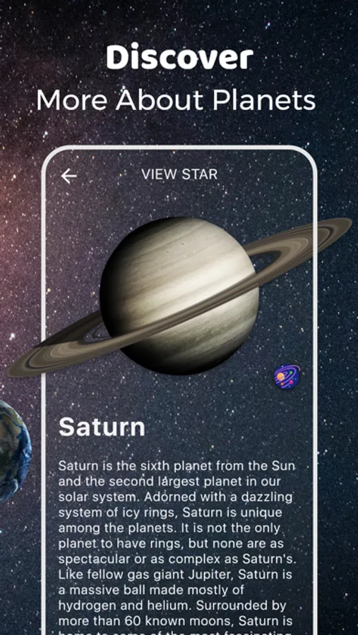 • Interact with planets and stars in 3D view, and learn about the galaxy just by moving your fingers across the screen.