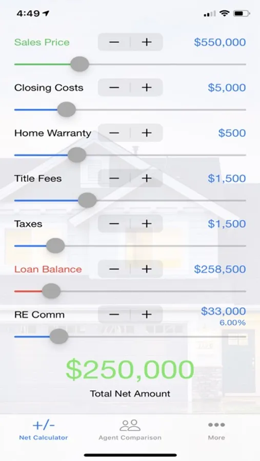 This is a handy and quick little calculator app that can help you determine what the net proceeds would be on the sale of a property. You could also use it to calculate equity for a property.
