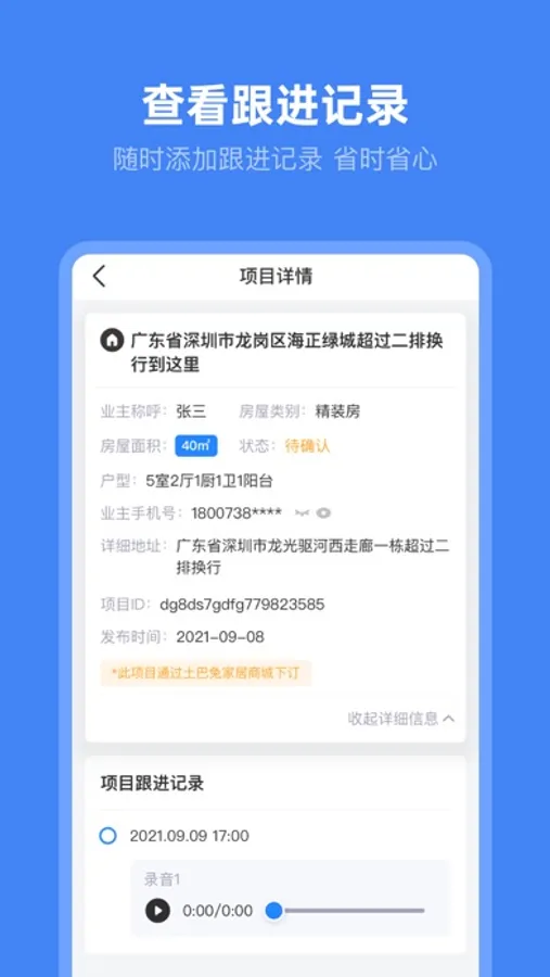 有新的派单项目,手机上会实时收到提醒,可以快速回访业主。
