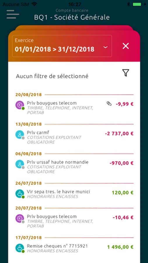Vos opérations bancaires sont synchronisés et catégorisées automatiquement jusqu'à 95% dans les rubriques de votre déclaration fiscale professionnelle et affecter aux bons comptes comptables.