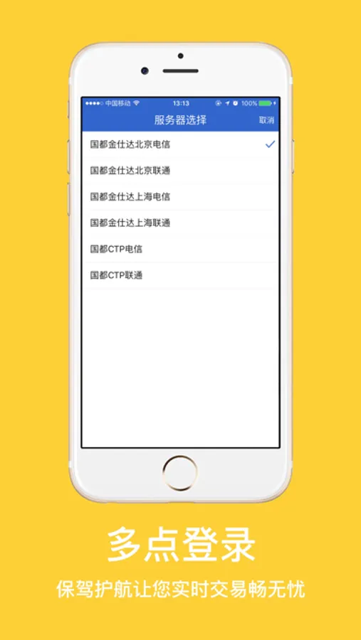 国都e期货是由国都期货有限公司联合博易推出的移动端期货交易APP。该应用支持在线行情浏览,自主开户,实时下单,查看实时持仓,支持云条件单,银行转账,实时资讯浏览等。同时支持国都期货金仕达以及CTP登录。