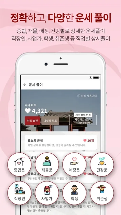 ④ 직업별 분류, 재물,건강,애정,종합운으로 분류한 상세 운세 풀이