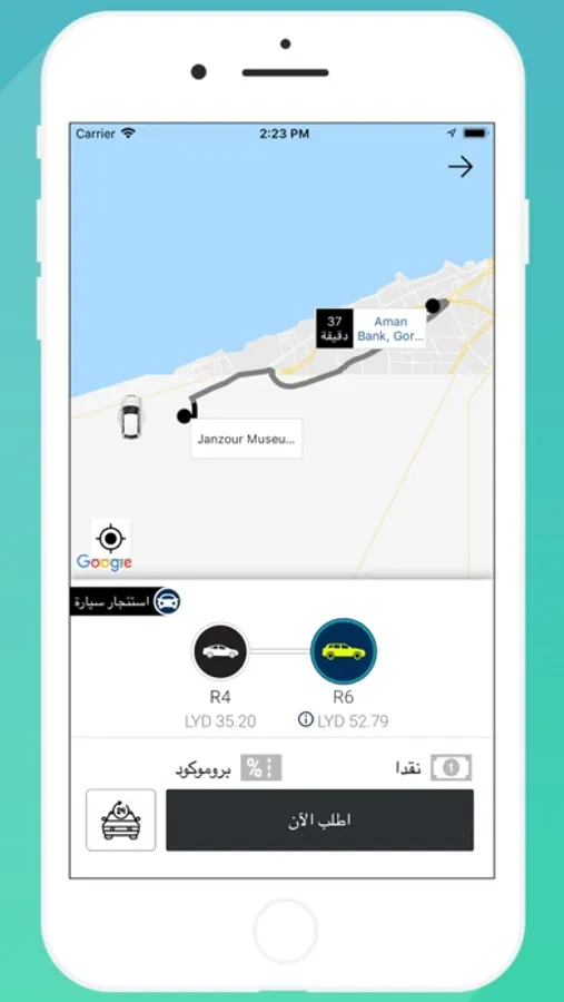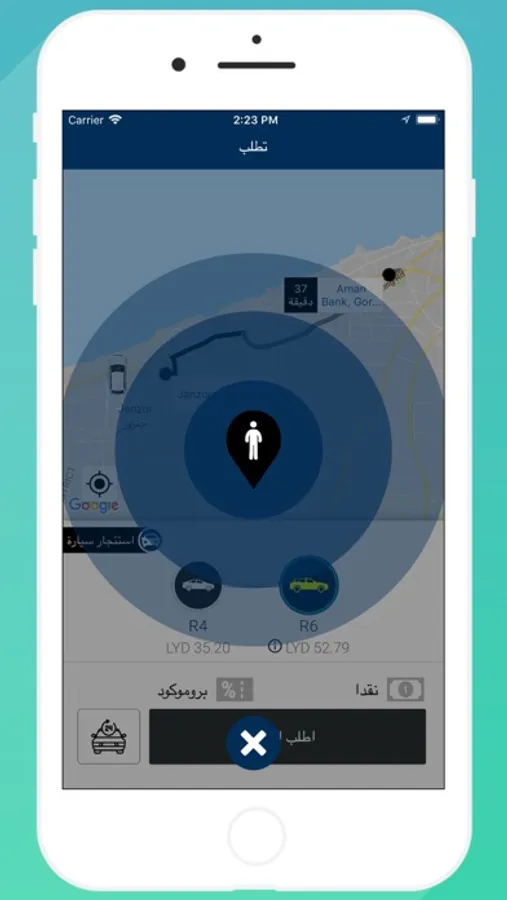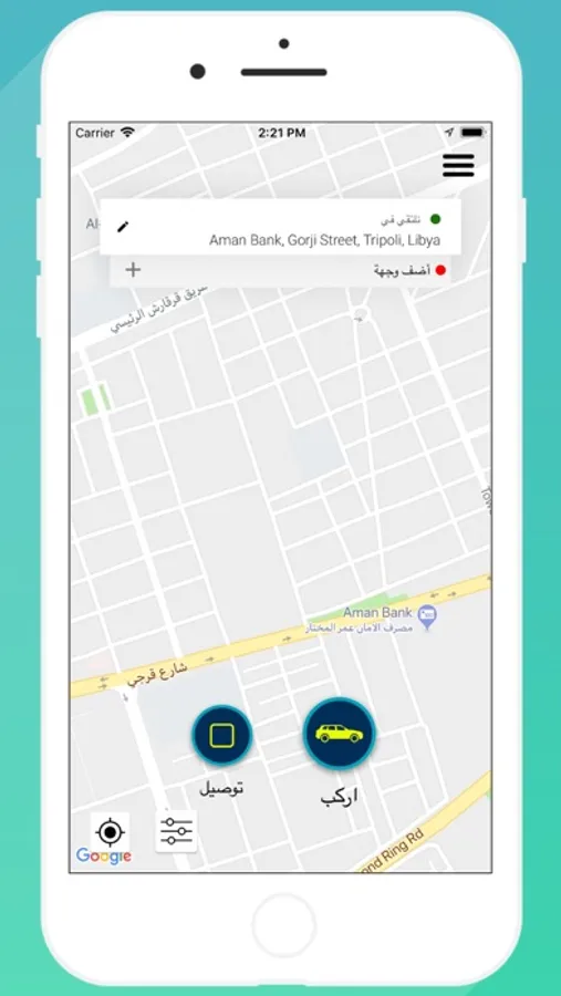- يستخدم التطبيق تقنية تحديد المواقع لتحديد موقعك حتى يتمكن السائق من الوصول إليك بدقة.