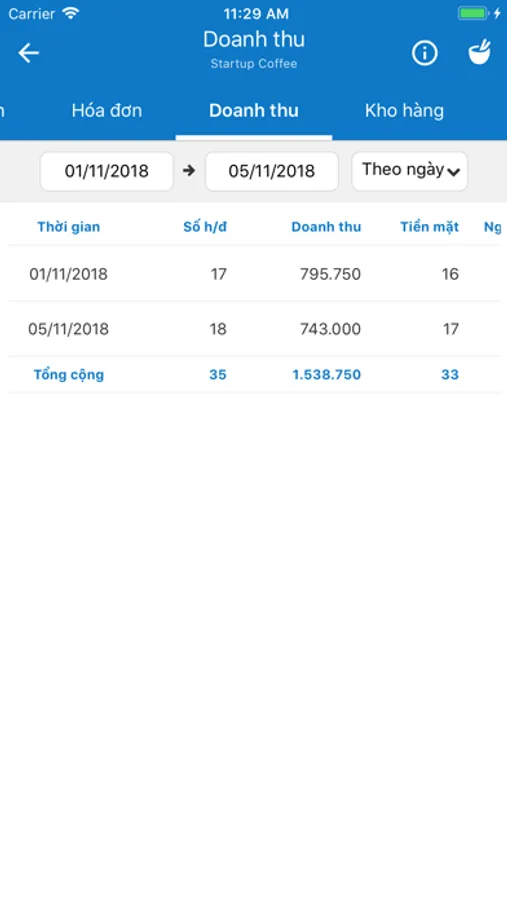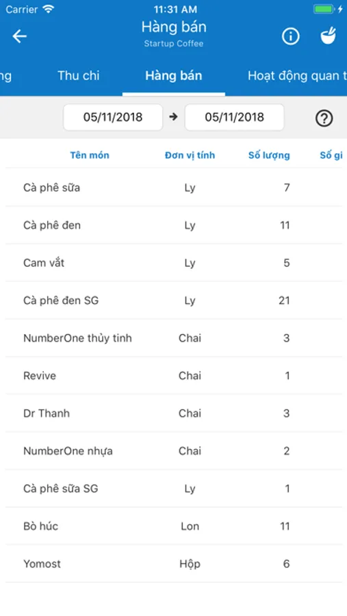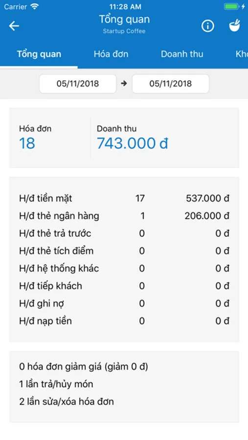 + Xem doanh số hiện tại (số hóa đơn, số tiền, các kiểu thanh toán...)
