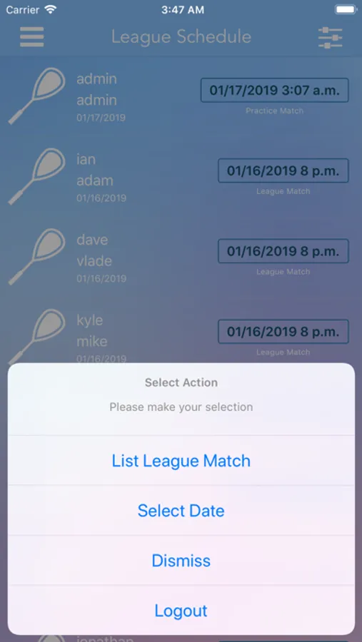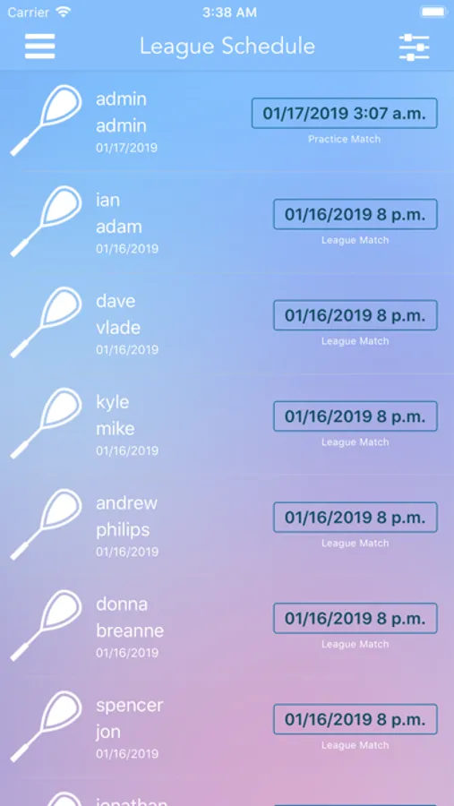 Use SquashPro to track your progress within your squash league and schedule matches with other squash players. Keep track of your scores on league matches and practices.