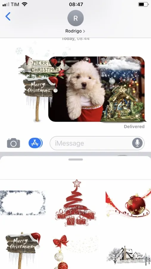 Open any message you have and at the bottom of the screen, you will see buttons of your app list out. If you saw this app, please tap on it and the stickers collection will show up, if not, please slide to the left to find this app.Â