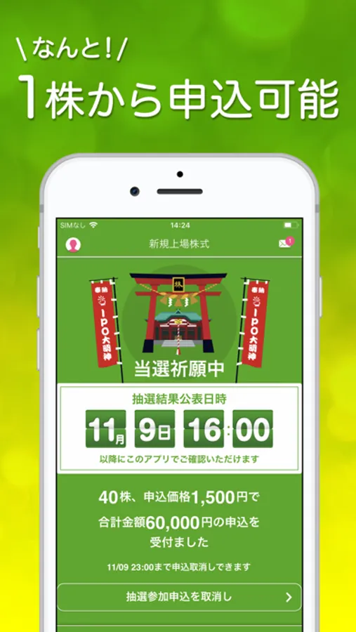 新規上場株式を1株から1株単位で100株(1単元)まで、購入申し込みができます。