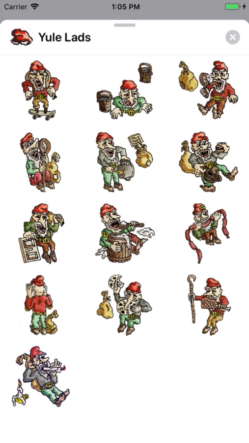 Send your friends and family greetings with these festive Yule Lad stickers.