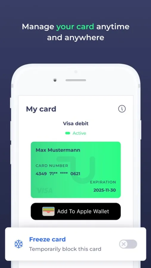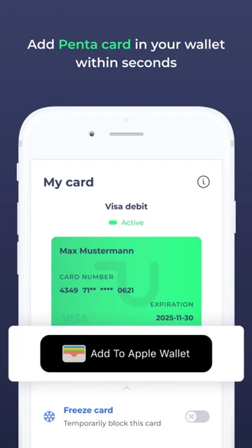You can easily manage your Penta debit card from VISA with your smartphone. Your PIN can be changed in seconds in the Penta banking app. You can also block your Penta card while you are on the move, should you ever need to.