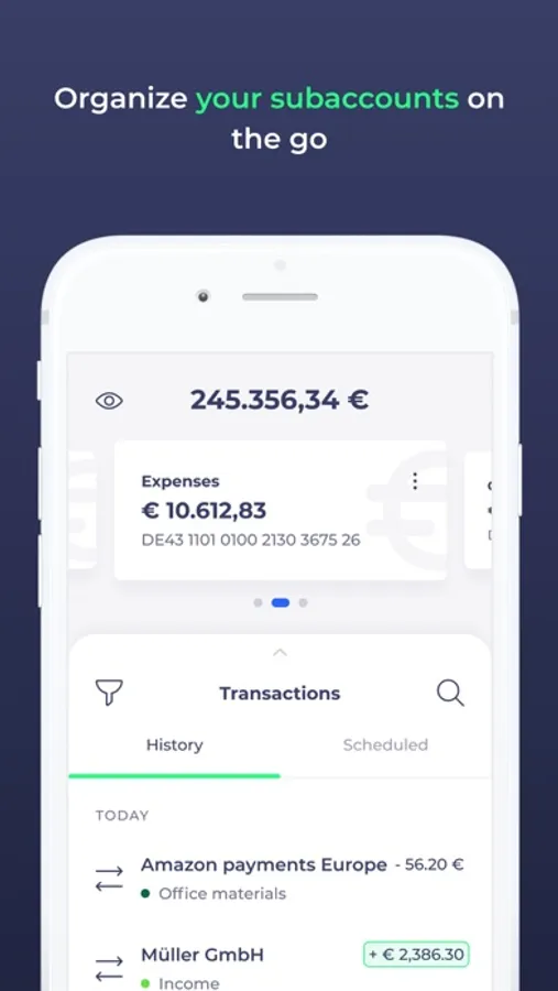 Log in to your Penta business account in seconds - also with FaceID or fingerprint. Your account balance and all transactions on your business account are always at your fingertips in your banking app. Transactions can be filtered by date, category or name in your app.