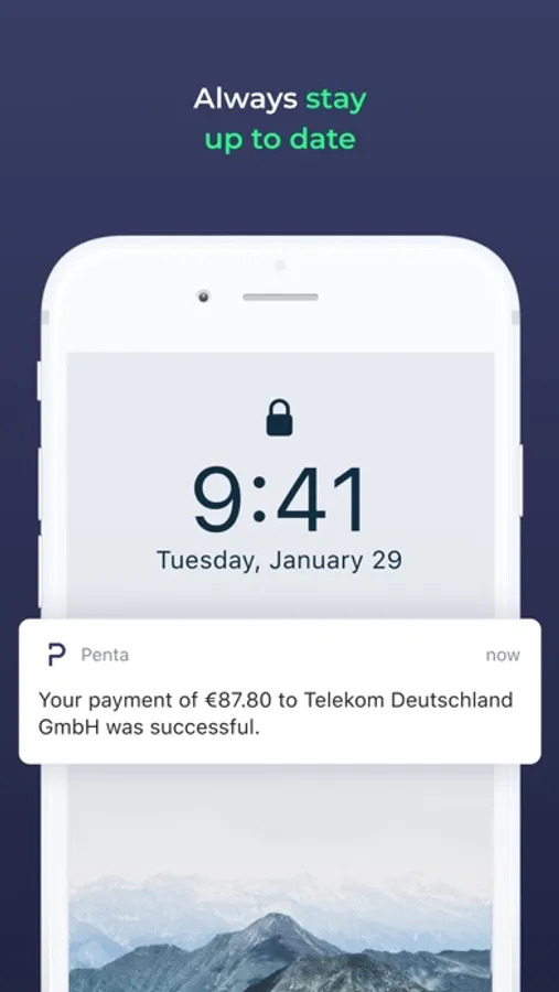 You can log in to your Penta business account quickly and easily on the go. Use FaceID or your fingerprint to securely log in to your banking app. For secure login to the web app on your PC or laptop, you can use device binding to confirm login via your smartphone. Your Penta banking app will keep you informed with updates via push notifications on your smartphone.