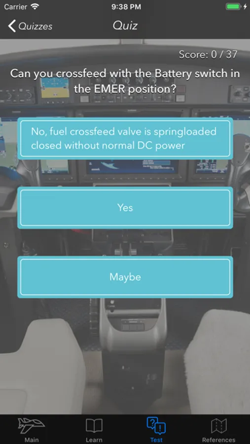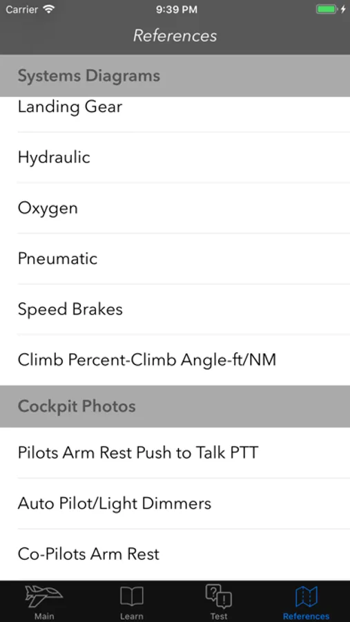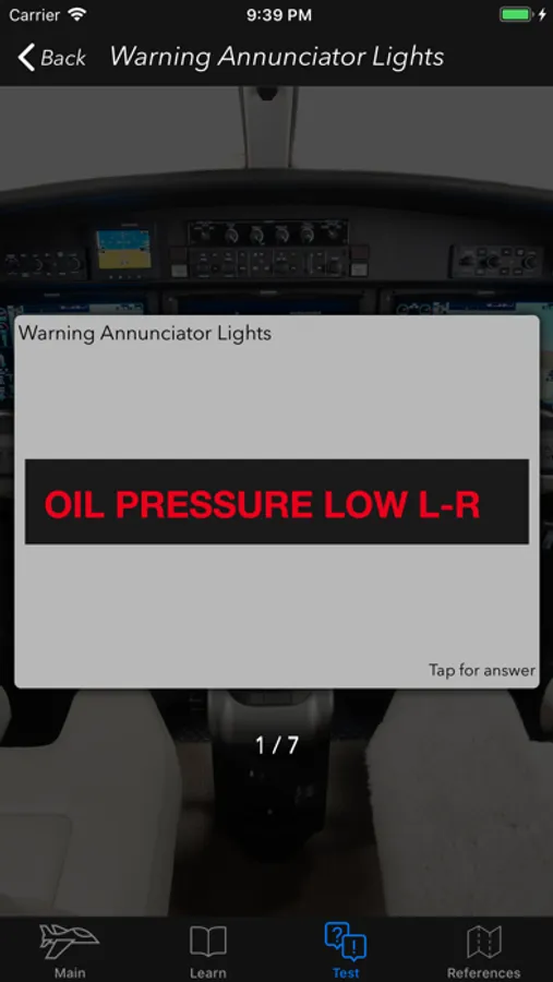 The test tab includes quizzes, flashcards and scenarios that cover all of the systems, memory items, CAS messages and performance and limitations. Quizzes keep track of your score and when you last took the quiz. There are almost 500 quiz questions organized by systems to help you prepare for your checkride oral exam. Flashcards cover memory items and limitations, CAS messages, systems and more. Flashcards can be done by system or randomized. Scenarios challenge you to put all your knowledge together and use it to figure out how to make flights under varying conditions along with all your performance data.