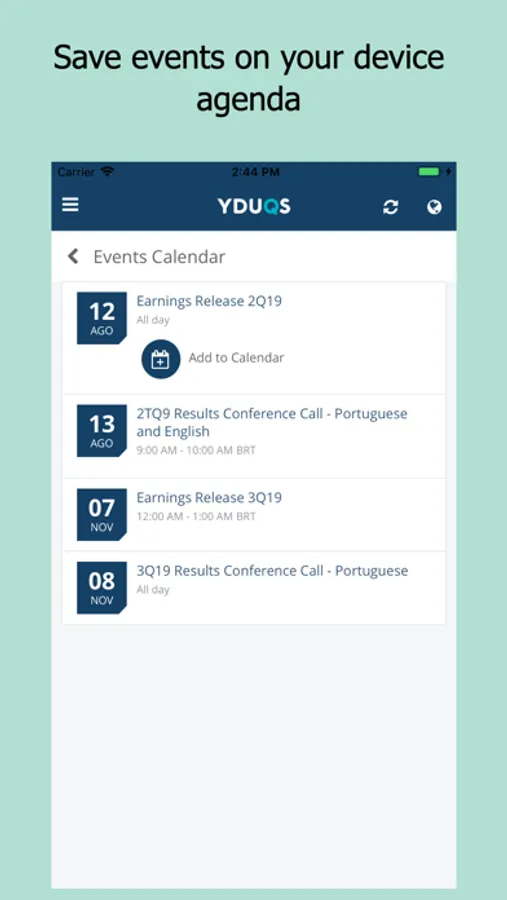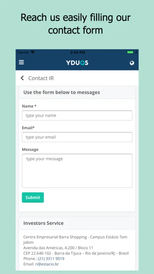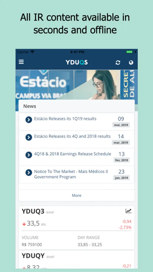 The YDUQS app will offer you - investor, analyst or anyone else interested - one more quick and practical way to access all information relating to YDUQS's performance made available at the Results Center, which includes all materials pertaining to quarterly earnings releases, as well as all notices and material facts. The app is available in Portuguese and English.