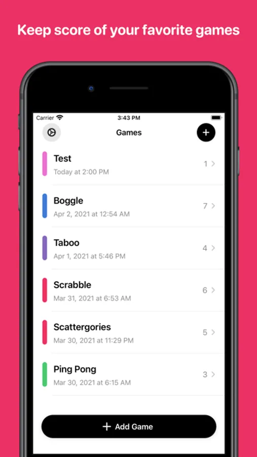 Love playing games with friends and family, but hate fiddling with tiny pencils, notebooks, or dice to keep score? Scorecard is an app that makes it easy to track scores in your favorite games. Enter the name of the game, add players, and start playing! As points are earned, watch as the scoreboard updates instantly to show who’s winning.