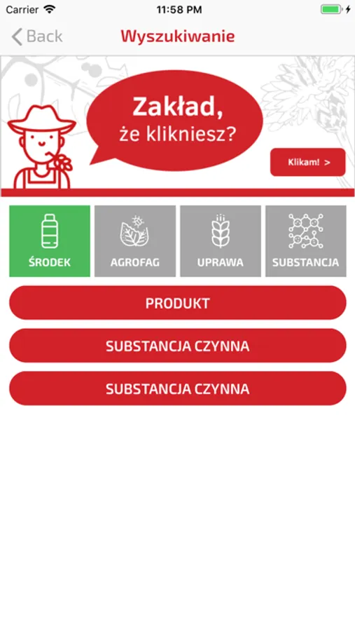 - W wersji testowej można zobaczyć jedynie 10 kart Produktu lub Substancji