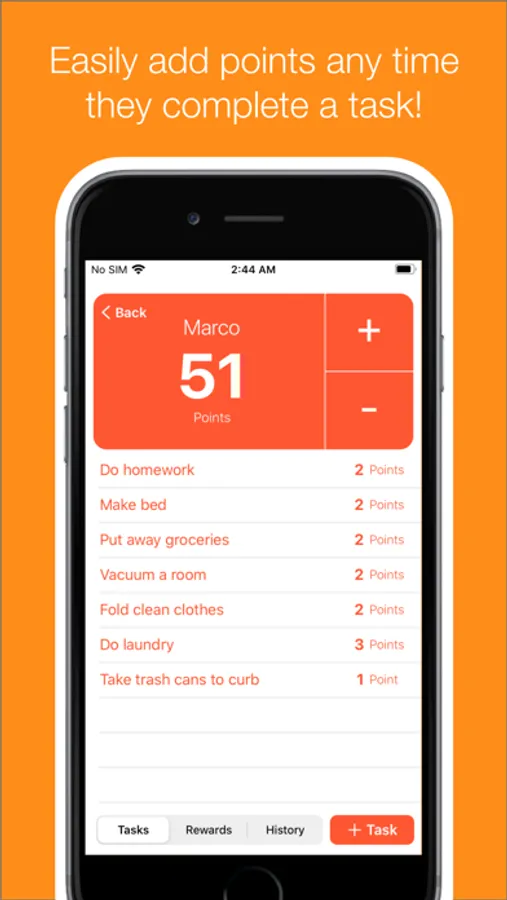 - Add task to each kid and give them points every time they complete one of their assigned tasks.