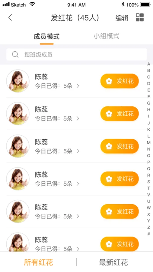 在对学生进行过程性评价的过程中,针对学校不同的课堂教学形式,目前通常为排排坐(常规教学模式)、团团坐(分组教学模式)两种形式,产品为两种教学模式提供了不同的红花发送方式,方便教师在课堂上便捷的对学生(小组)进行即时的过程性评价和奖励。