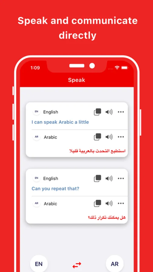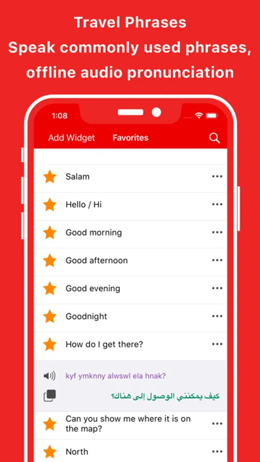 Speak & Learn Arabic Language هو مترجم صوتي ونص لا غنى عنه يتيح لك التواصل بفعالية في أي ركن من أركان العالم.