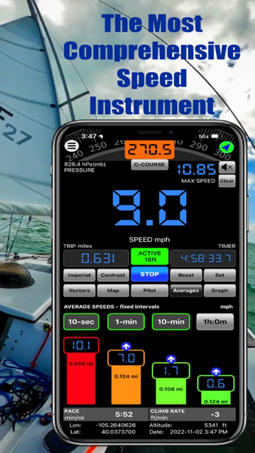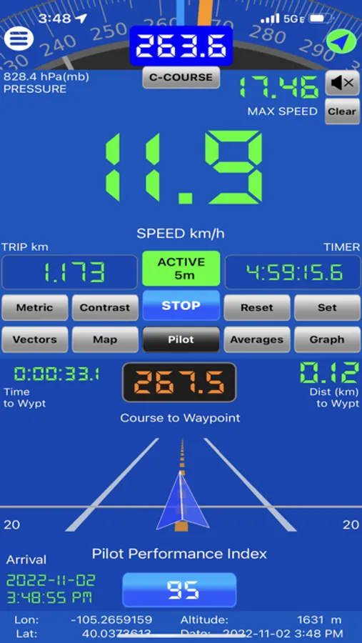 tcSpeeds provides advanced knowledge of your current speed, average speeds, maximum speed, directional speeds, velocity made good, wind measurements, and much more. You will be able to measure your performance on a straight course with our proprietary Pilot Performance Index (PPI) computation. Compare how good you are at the controls with your friends or against your autopilot.