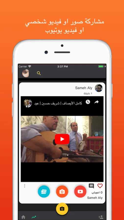 شير فيديو شخصي من البوم الصور او من الكاميرا بحد اقصي ٣٠ ثانية