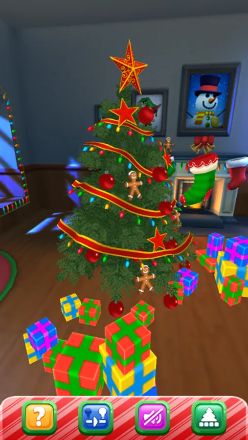 Use swipes to navigate through pages of ornaments and lights, and taps to place