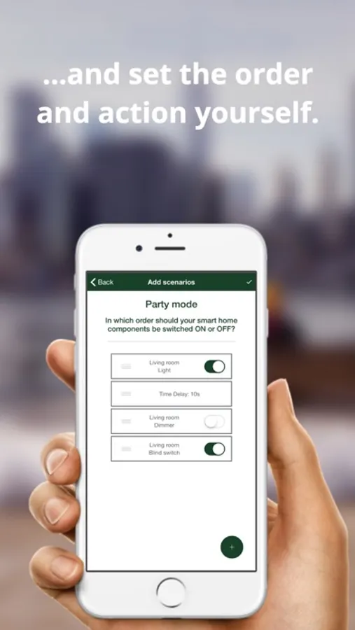 In our app, you can easily set that is detected in a burglary by motion or magnetic switch, all the lights are set to the maximum level and the blinds are raised.