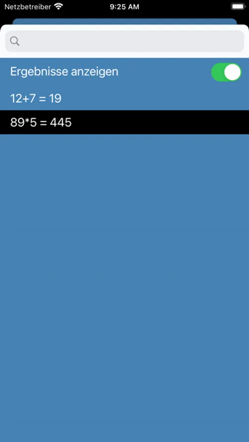 The entered term and the result can be transferred to other programs with a long press and copy or paste. The color of the background can be changed by shaking it (iOS only) or via a dialog.