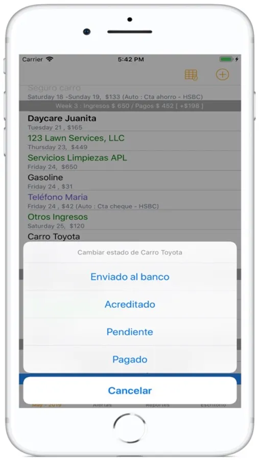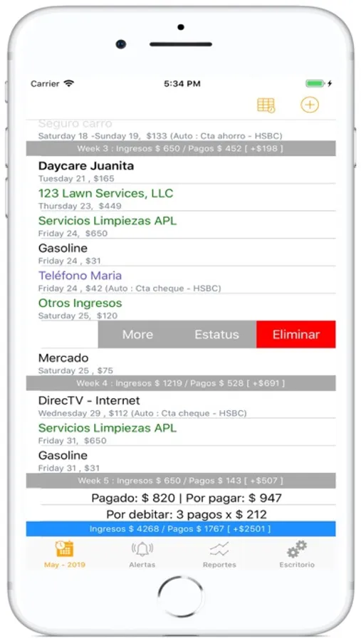 Gestiona todos sus pagos: Fijos mensuales, semanales, por cuotas, pagos eventuales a futuro y pagos con cargo automáticos a sus cuentas. Dígale adiós a los problemas generados por falta de pago a tiempo o por falta de fondo en sus cuentas!.