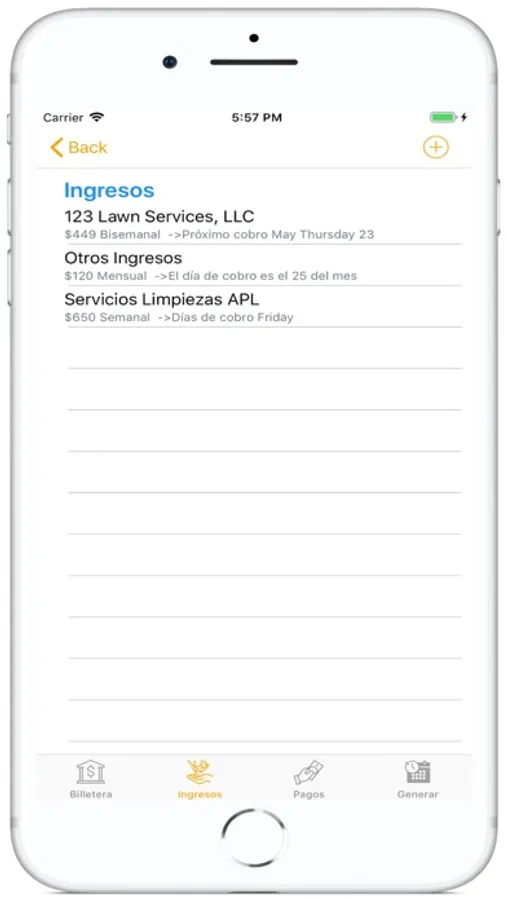 Usted define una sola vez sus instrumentos financieros, sus fuentes de ingresos, sus pagos. Genere el presupuesto y listo!