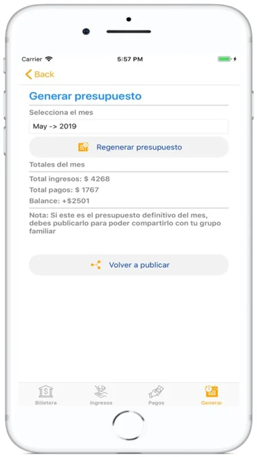 Presupuesto familiar compartido y centralizado. Usted y los miembros del grupo familiar que desee podrán colaborar en el manejo del mismo.