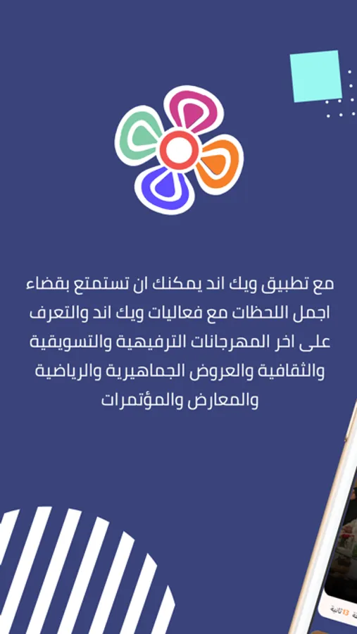 مع تطبيق ويك اند يمكنك ان تستمتع بقضاء اجمل اللحظات مع فعاليات ويك اند والتعرف على اخر المهرجانات الترفيهية والتسويقية والثقافية والعروض الجماهيرية والرياضية والمعارض والمؤتمرات