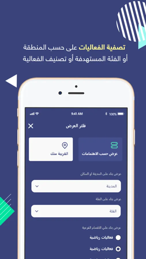 2. تصفية الفعاليات على حسب المنطقة أو الفئة المستهدفة أو تصنيف الفعالية.