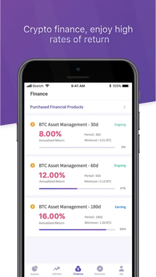 Open an account with one tap and enjoy 0 transaction fee and fast transfers between Banko account users. Get high rates of return with multi-crypto financial products.