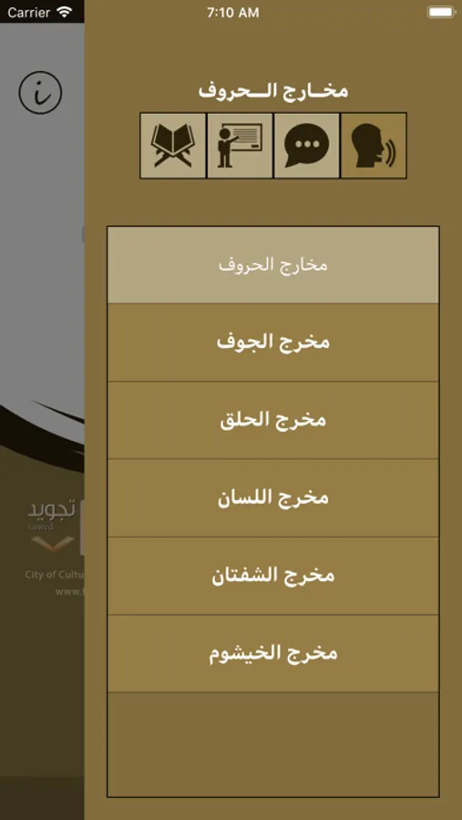ويحتوي على مخارج الحروف وصفاتها وشرحها مع الأمثلة ونطق الحروف بالصوت والحركة.