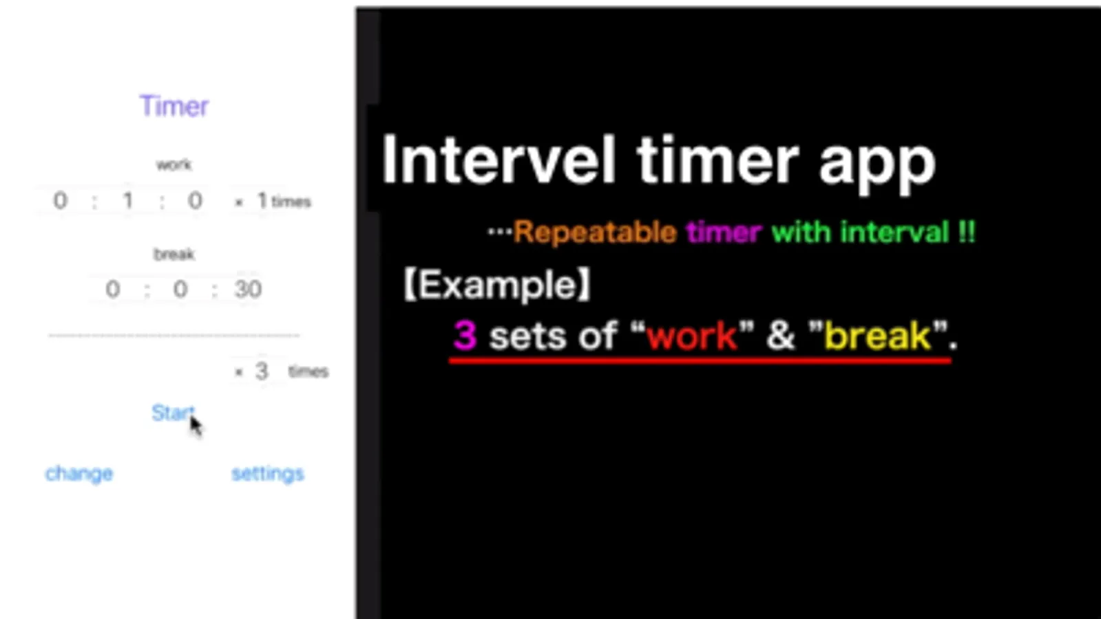 This is a timer application that can be repeated settings and interval settings.