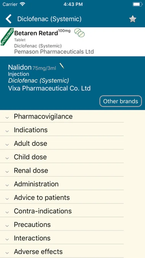 Drugs details (Indications, Dosage & administrations, Contraindications, Precautions & warnings, Pharmacovigilance, Adverse effects, Advice to patients, Nursing action, Drug product descriptions & Pack sizes)