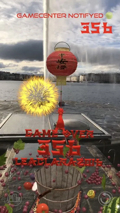 For an optimal gaming experience, use the focus-square to point on a range between 2 and 5 meters in front of you. Slowly scan the floor. When a suitable surface is found the red game-play button shows-up. Choose your favorite game-mode. Place the wire-frame-basket as you like. Press the game-play button.