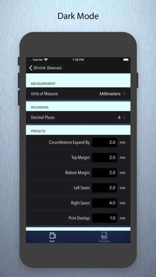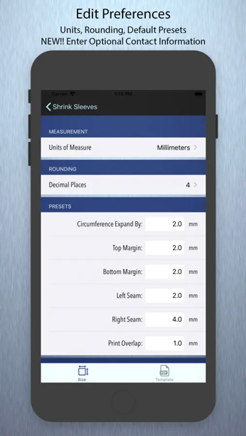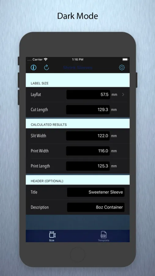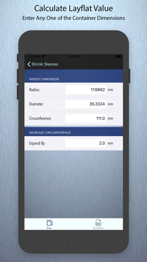 This app will help determine the measurements needed to create form-fitting shrink sleeve templates used by container manufactures, label printers and graphic designers.
