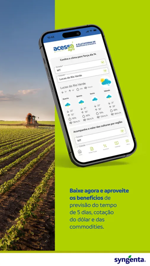Chegou Acessa Agro! A plataforma de benefícios da Syngenta que reúne as melhores soluções para você produzir mais e melhor. Uma plataforma para fortalecer sua parceria com a Syngenta, agregando valor e oferecendo benefícios diferenciados para você e seu negócio. Se você é agro, Acessa!