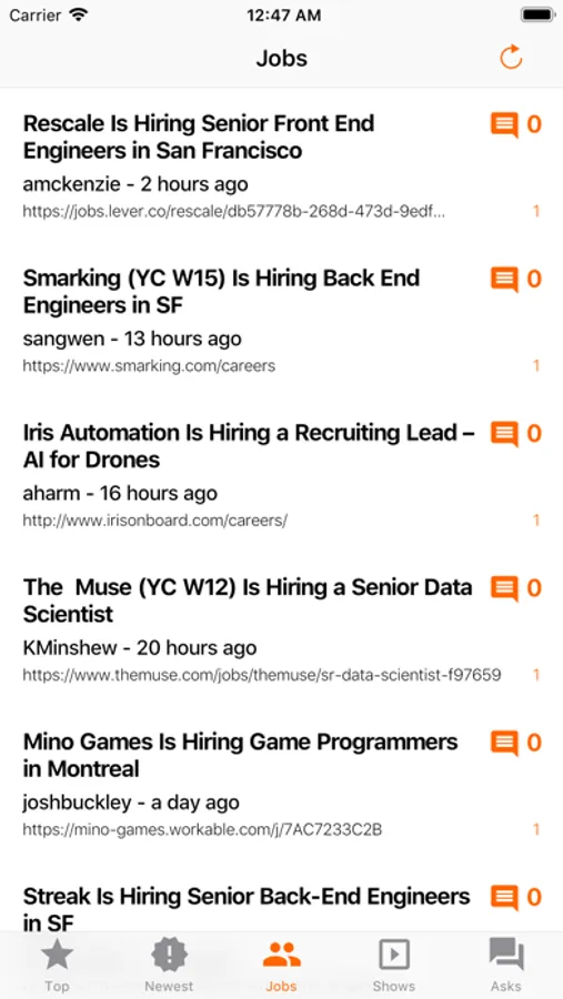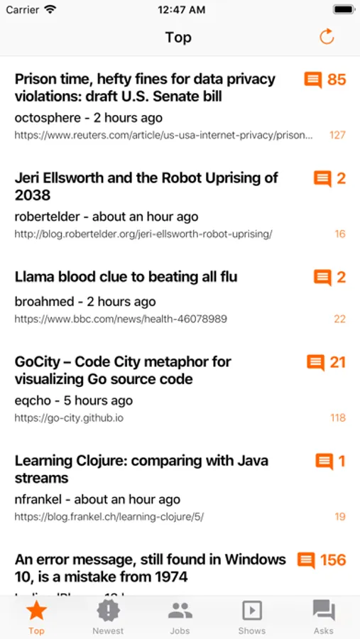 -Get latest top , newest stories, shows, asks, and jobs from Hacker News