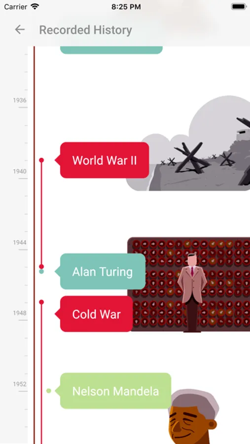 The History of Everything is a vertical timeline that allows you to navigate, explore, and compare events from the Big Bang to the birth of the Internet. Events are beautifully illustrated and animated.