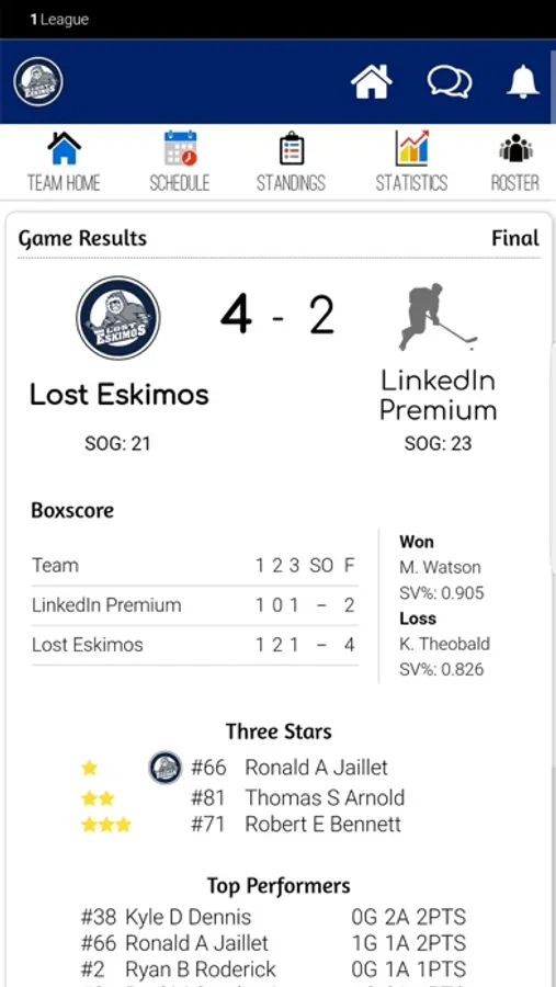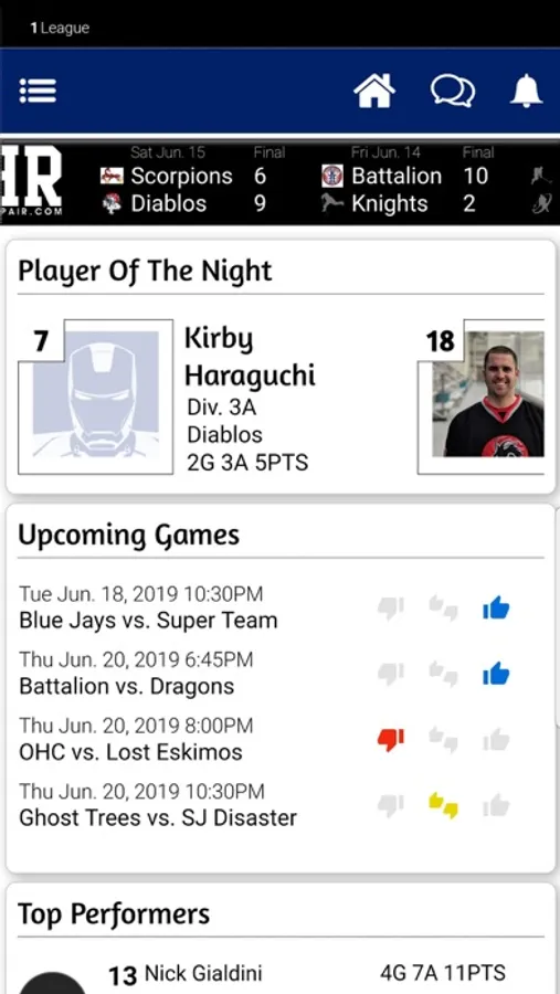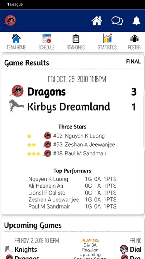 * See who were the stars in the last game and who made the Player Of The Night league-wide. Additionally, you can see who are the Three Stars of a game and who were the Top Performers